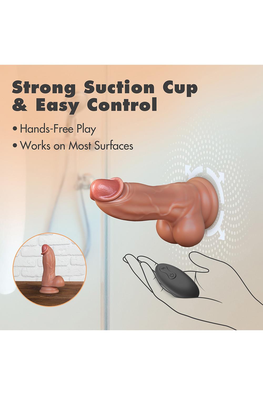 Meet Dr. Brody! Designed for effortless pleasure and precision, this 8.75” vibrating dildo combines a realistic design with powerful sensations, delivering a truly satisfying experience. Crafted from platinum cured liquid silicone, Brody offers an ultra-soft touch with a firm, curved, and thick shaft that targets the G-spot or prostate with ease. Whether you're exploring solo or with a partner, this girthy stud is always ready to deliver. Enjoy 3 powerful thrusting speeds and 9 vibration modes, providing endless ways to customize your pleasure. The strong suction cup base allows for hands-free fun and is harness & strap on compatible for even more versatility. Take control with the wireless remote, perfect for adjusting the settings at your own pace or letting your partner take the lead. Dr. Brody is USB rechargeable, offering up to 90 minutes of uninterrupted play after a full charge. Easy to clean and always ready when you are, your doctor on call is here to elevate your pleasure.