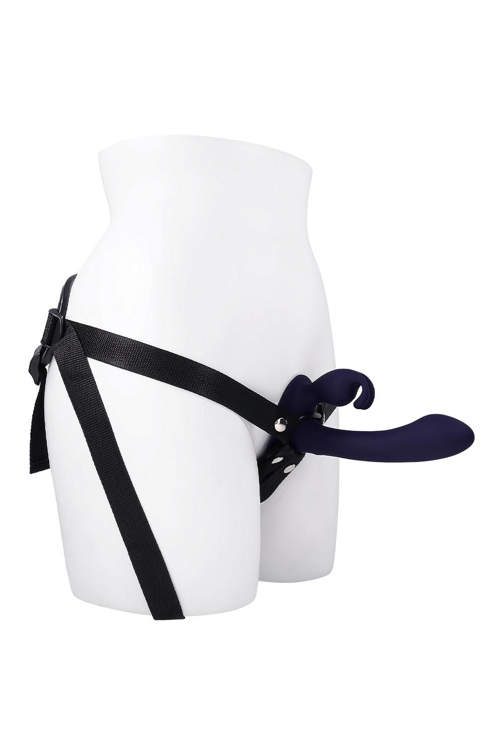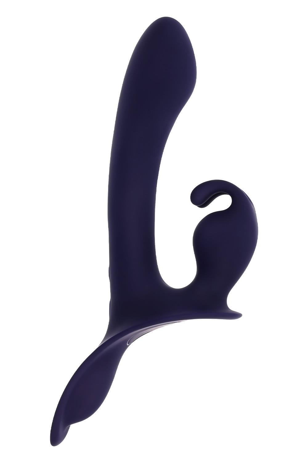 Give and receive intense pleasure with this strap-on triple-motor vibe that features a curved, chisel-tip main shaft, chunky bunny-eared stimulator, and a third tail flap motor that makes contact with the wearer. Every part of this unique silicone vibe is flexible to move with body motion, and the waist and thigh harness straps are completely adjustable. A sturdy ring holds the vibrator in place for maximum comfort and navigation.